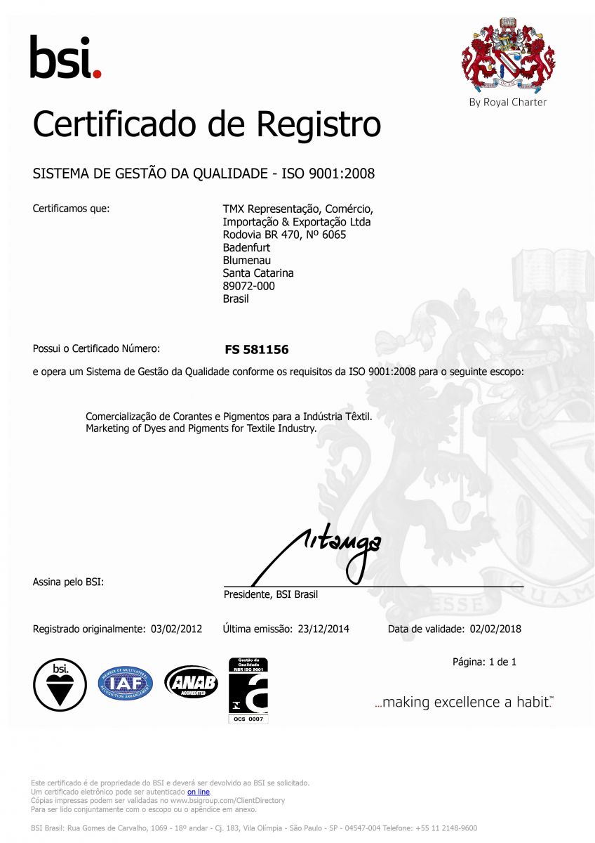A certificação na Norma ISO 9001, pelo órgão certificador SGS, confirma a preocupação com nossos clientes e a qualidade de nossos produtos.